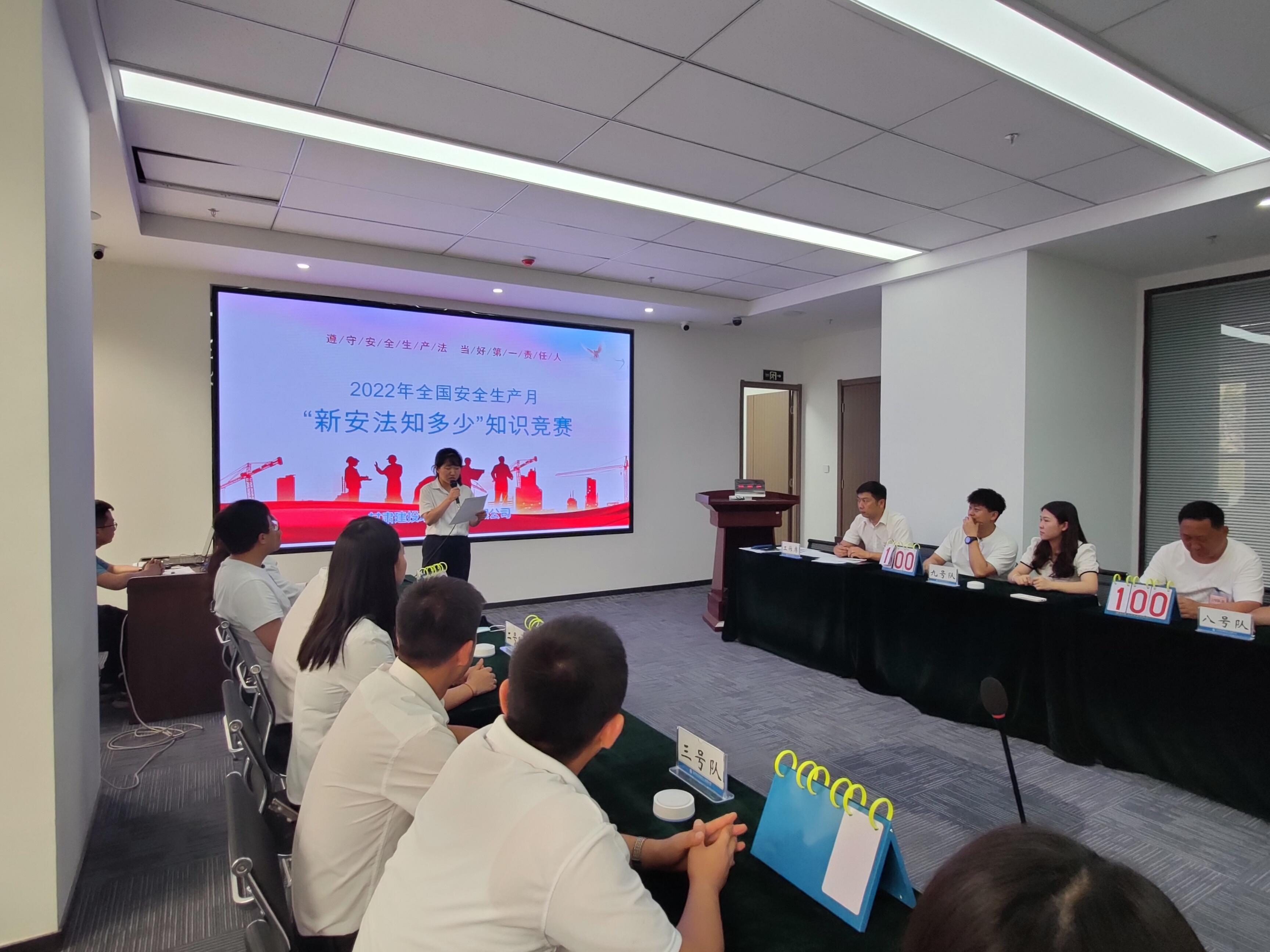 專題培訓(xùn)后,公司舉辦“新安法知多少”知識(shí)競(jìng)賽,公司總經(jīng)理衛(wèi)偉、副總經(jīng)理趙仕民、副總經(jīng)理王軍出席競(jìng)賽現(xiàn)場(chǎng)。