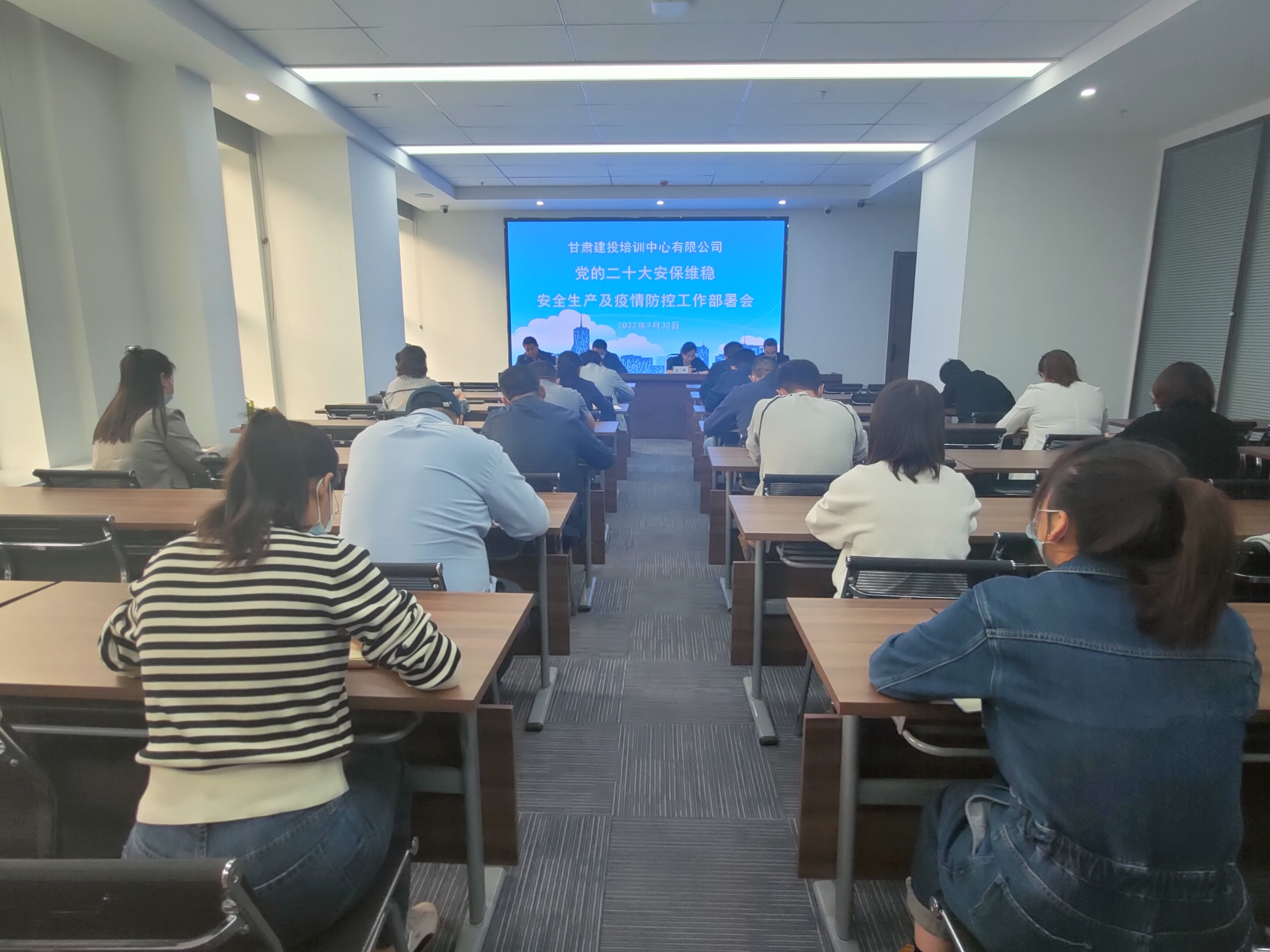 9月30日,甘肅建投培訓(xùn)中心有限公司組織召開(kāi)黨的二十大維穩(wěn)安保工作專題會(huì)暨國(guó)慶節(jié)前安全生產(chǎn)、疫情防控專題部署會(huì)議。甘肅建投培訓(xùn)中心有限公司黨支部書(shū)記、總經(jīng)理衛(wèi)偉,副總經(jīng)理趙仕民,副總經(jīng)理王軍出席會(huì)議,公司全體職工參加會(huì)議。
