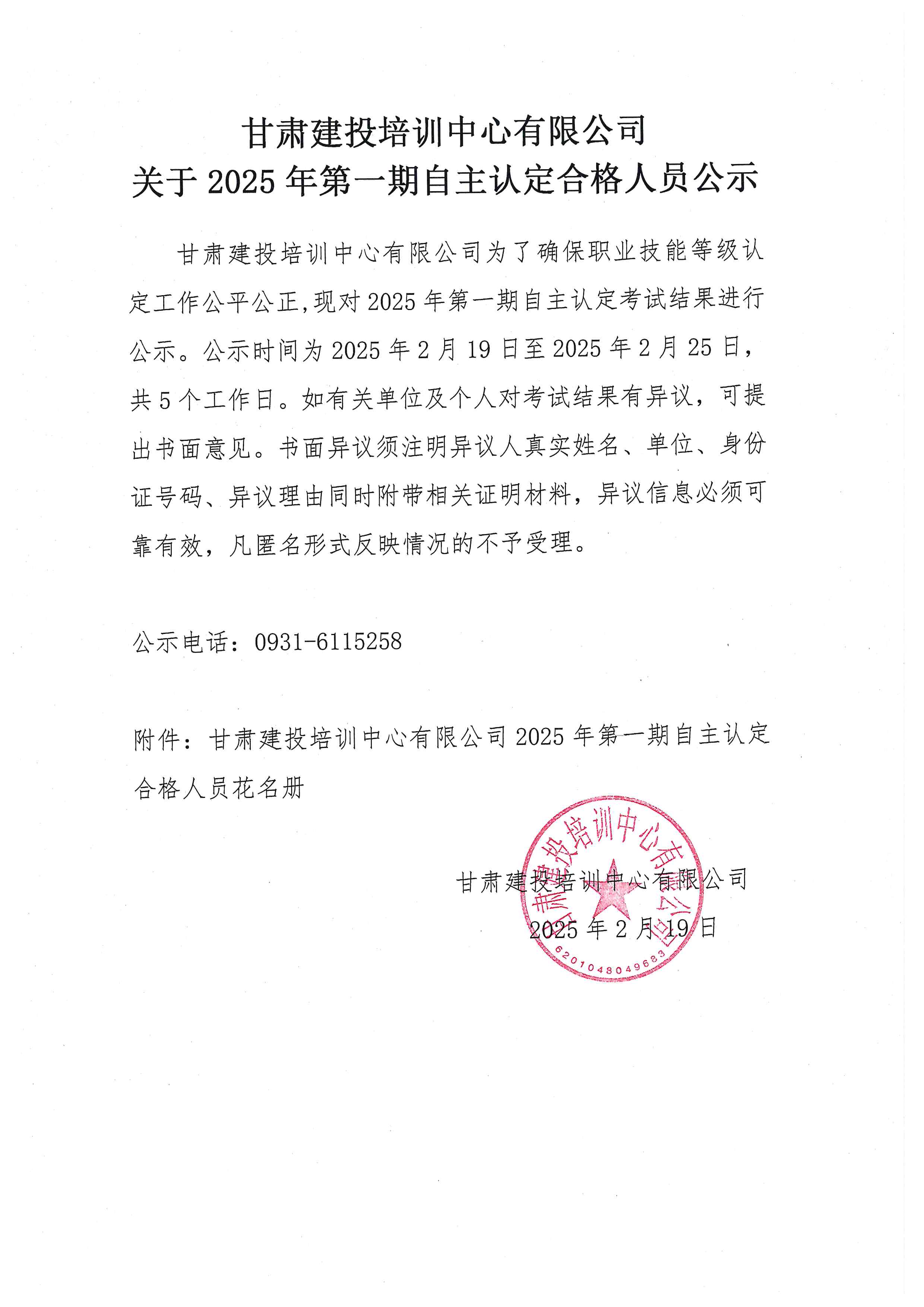 甘肅建投培訓(xùn)中心有限公司 關(guān)于2025年第一期自主認(rèn)定合格人員公示